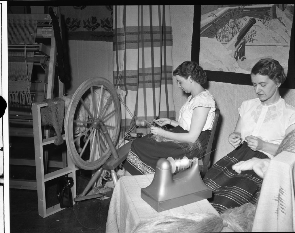 Démonstration de filage par mlles Madeleine Dionne et Parent au Congrès des journalistes au Château Frontenac
