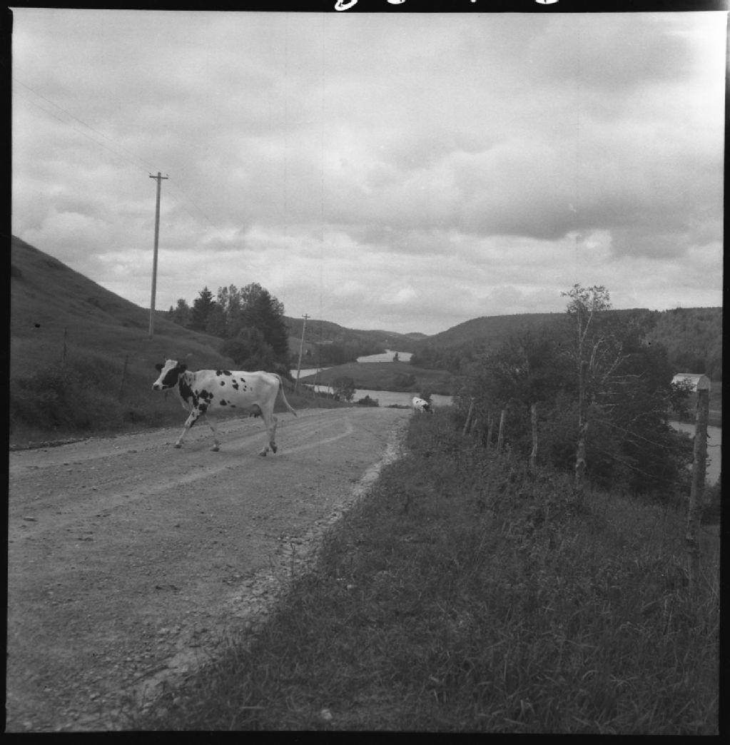 Paysage de la rivière Métabetchouan sur la route de, Saint-André, comté Roberval, 1950, Archives nationales à Québec, Fonds Ministère de la Culture et des Communications, (03Q,E6,S7,SS1,D2,P83176), Auguste Mailloux.