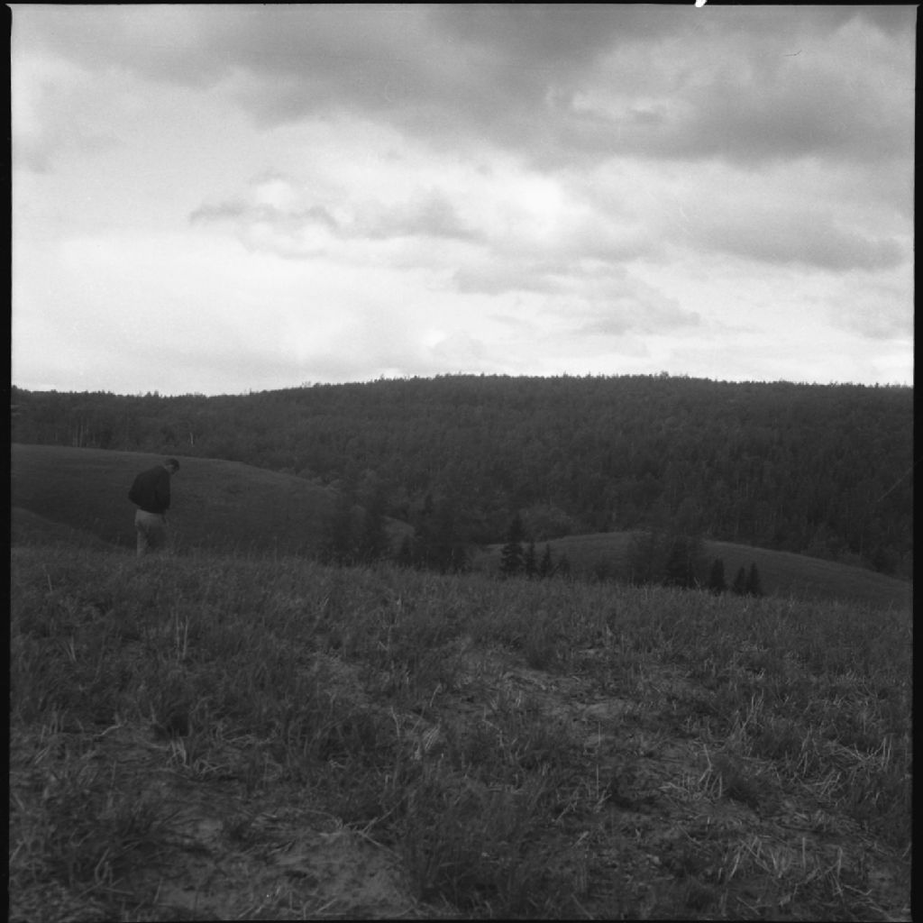 Cuvette ou chaudron (Kettle) enfoncée dans la plaine sablo-lacustre. La cuvette est ici par les têtes des épinettes, Lac Belley, Roberval