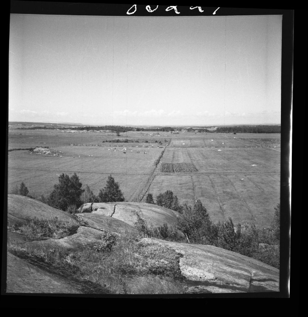 Plaine argileuse avec buttes d'anorthosite photo prise en regardant vers Alma, Saint-Bruno rang V et VI , Lac Saint-Jean, 1955, Archives nationales à Québec, Fonds Ministère de la Culture et des Communications, (03Q,E6,S7,SS1,D2,P83229), Auguste Mailloux.
