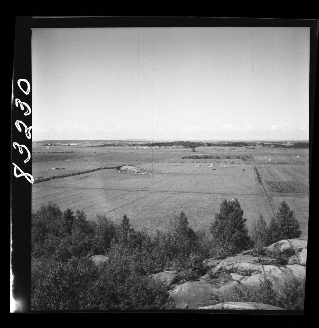Plaine argileuse avec buttes d'anorthosite photo prise en regardant vers Alma, Saint-Bruno rang V et VI , Lac Saint-Jean, 1950, Archives nationales à Québec, Fonds Ministère de la Culture et des Communications, (03Q,E6,S7,SS1,D2,P83230), Auguste Mailloux.