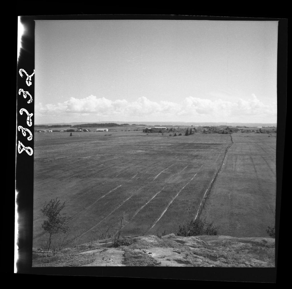 Rang V et VI Sidnay. La Plaine argileuse en regardant vers Hébertville. Au fond, l'escarpement du plateau Laurentien,Saint-Gédéon, Lac Saint-Jean