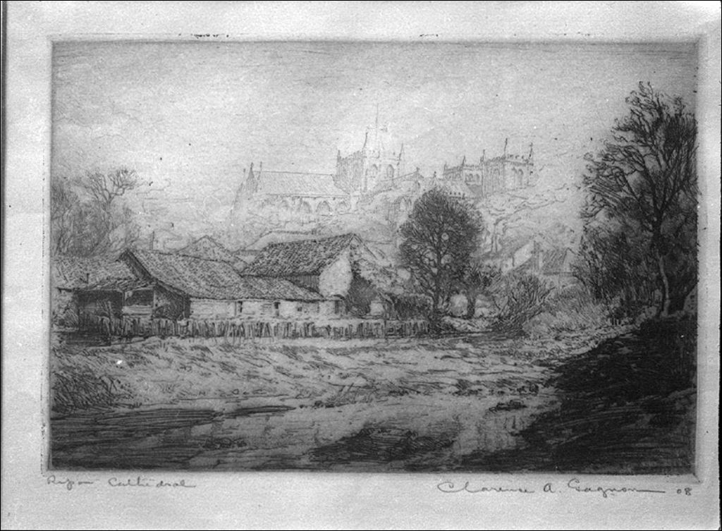 Oeuvres de Clarence Gagnon, Musée provincial de Québec: Peinture: La cathédrale à Ripon, 1942, Archives nationales à Québec, Fonds Ministère de la Culture et des Communications, (03Q,E6,S7,SS1,D2,P8329), Paul Carpentier.