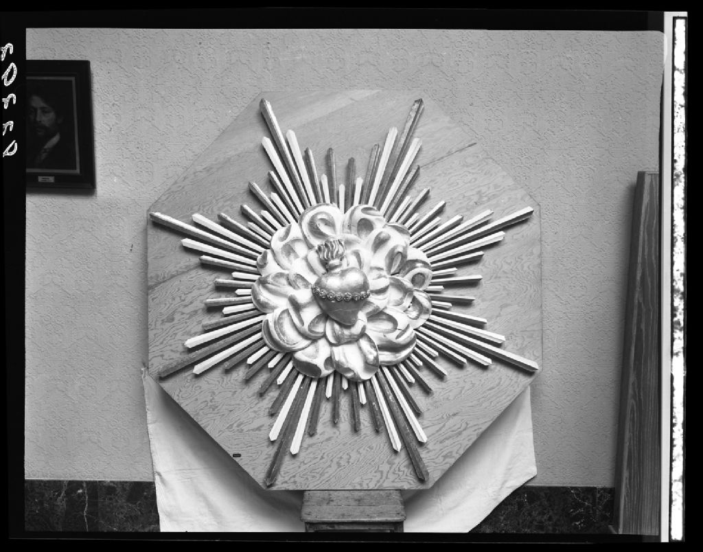Gloire à Rosace courronnée de roses en bois, ornement d'église au Musée de la province