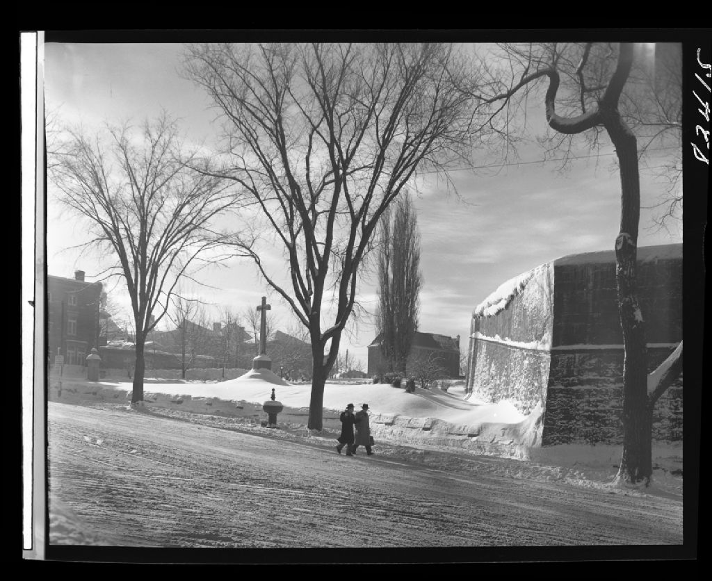 Croix du sacrifice sur la Grande-Allée à Québec, 1951, Archives nationales à Québec, Fonds Ministère de la Culture et des Communications, (03Q,E6,S7,SS1,D2,P83415), Neuville Bazin.