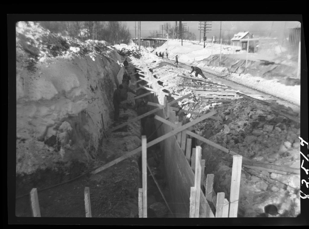 Viaduc au dessus C.N.R. Basses Côte-Nord. Saint-Télésphore, comté Lévis., 1951, Archives nationales à Québec, Fonds Ministère de la Culture et des Communications, (03Q,E6,S7,SS1,D2,P83567), Marcel Gagnon.