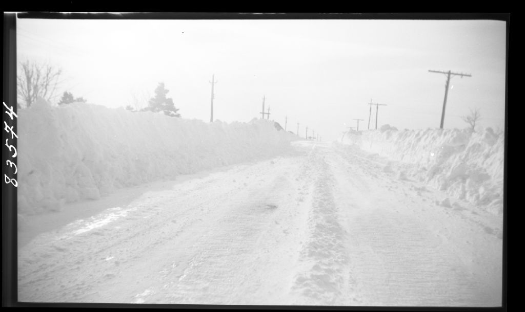 Entretien d'hiver 1950-1951, route numéro 2, partie Ouest du premier village, Saint-Roch-des-Aulnaies, comté de L'Islet