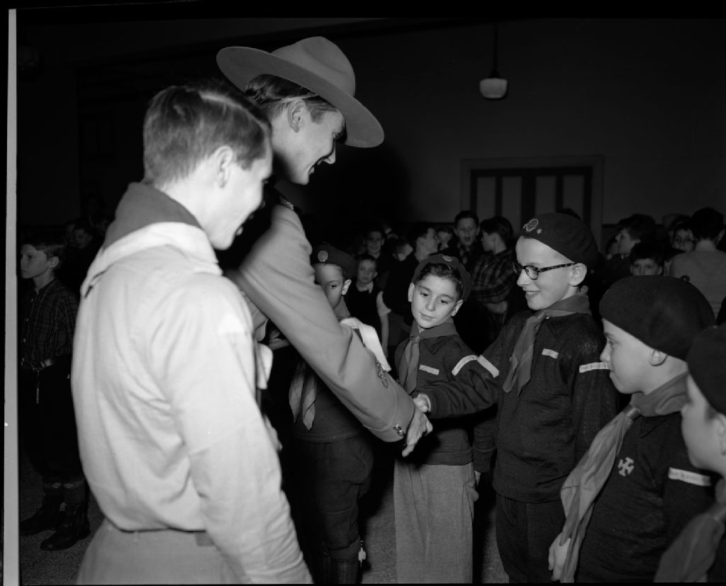 Visite de la Gendarmerie Royale du Canada, section "Police et jeunesse", salle St-Coeur de Marie, 1951, Archives nationales à Québec, Fonds Ministère de la Culture et des Communications, (03Q,E6,S7,SS1,D2,P83709), Neuville Bazin.