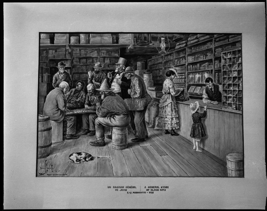 Un magasin générale de jadis, 1925 par J. Edmond Massicotte au Musée de la province