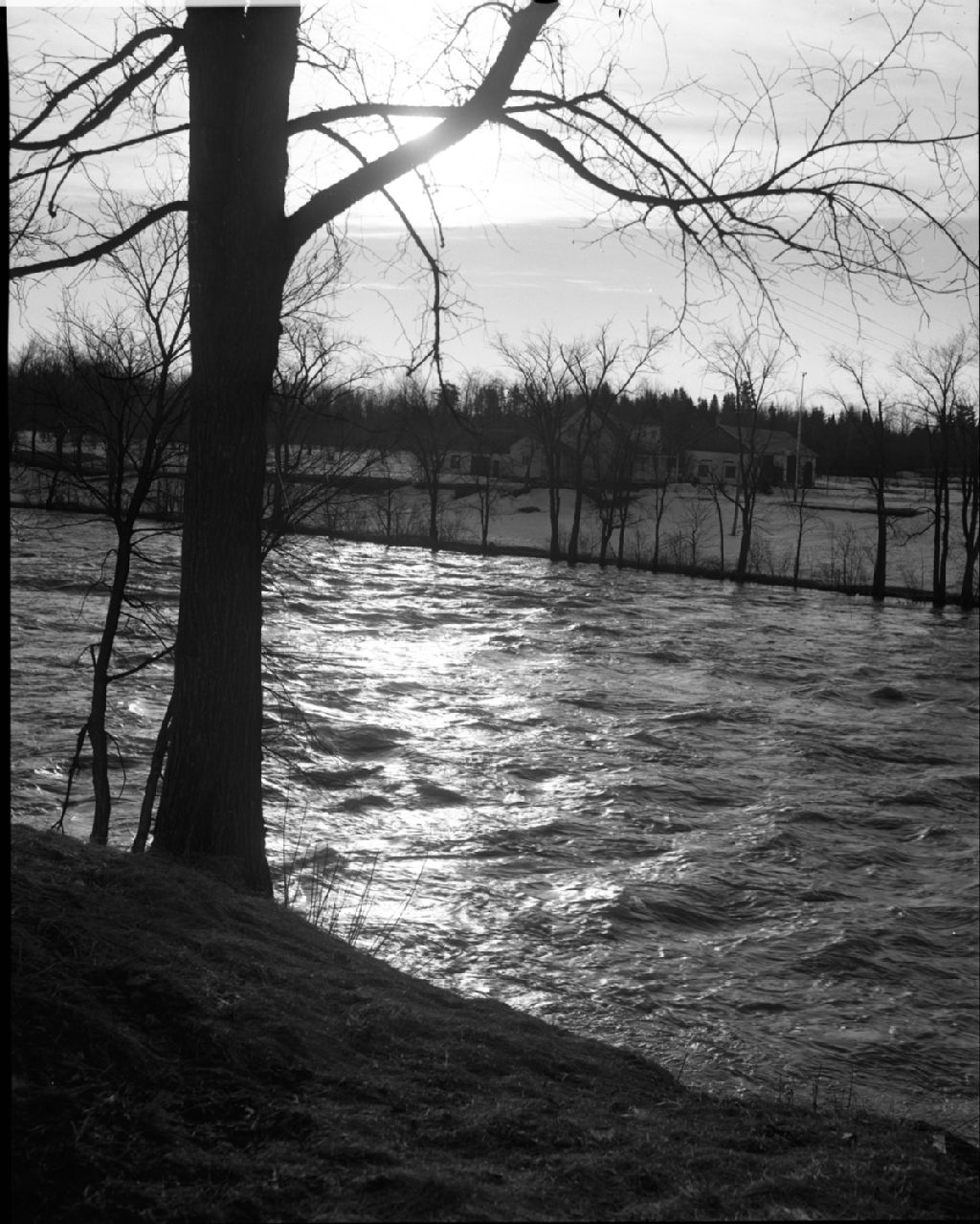 La rivière Etchemin aux hautes eaux. Saint-Henri, 1951, Archives nationales à Québec, Fonds Ministère de la Culture et des Communications, (03Q,E6,S7,SS1,D2,P84058), J.W. Michaud.