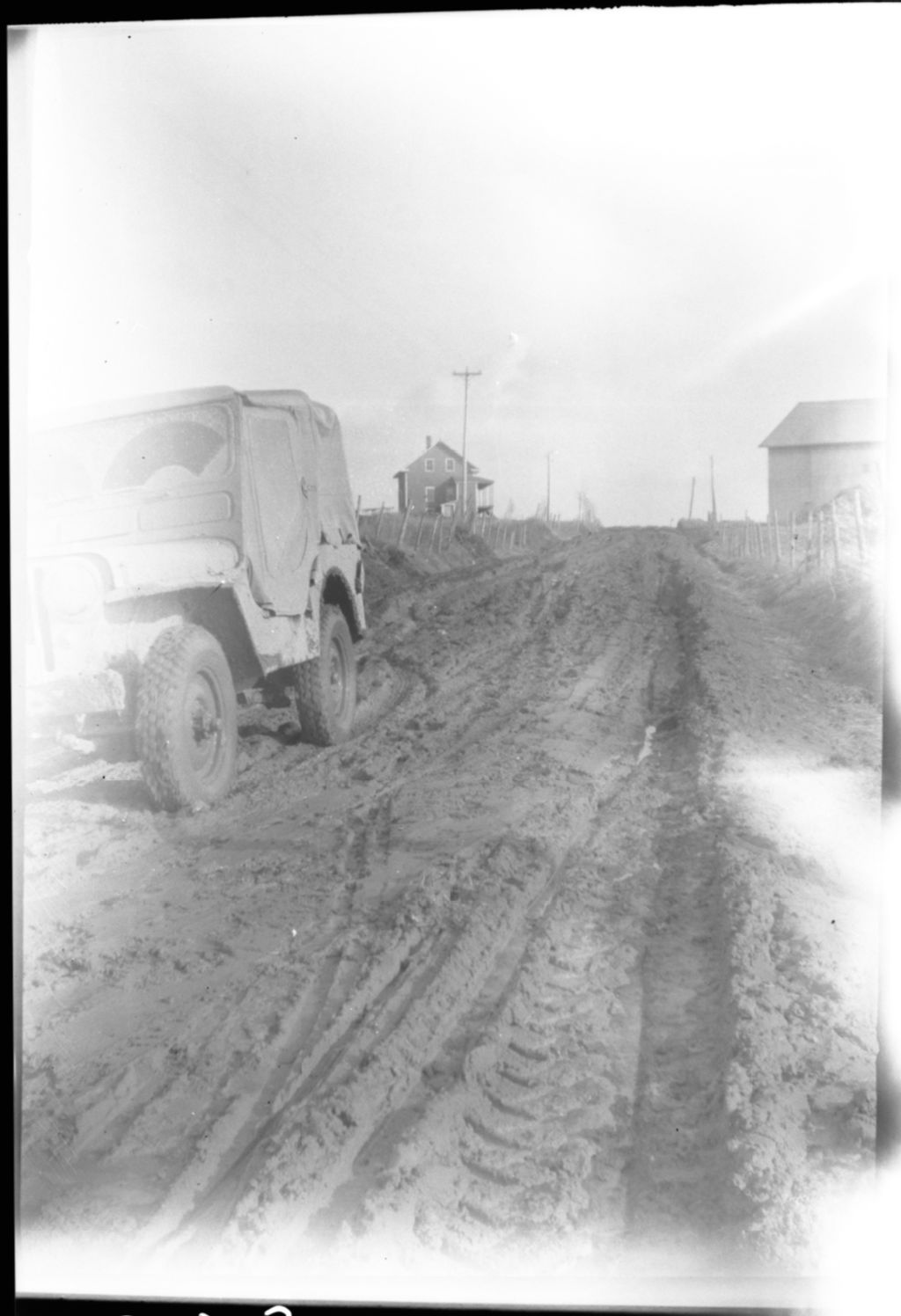 Dégel printemps 1951, route Squatec - Lejeune, chemin du rang Est, comté de Témiscouata