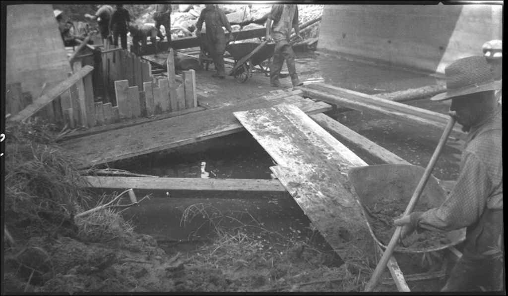 Caisson du pont à Sainte-Marguerite, 1942, Archives nationales à Québec, Fonds Ministère de la Culture et des Communications, (03Q,E6,S7,SS1,D2,P8461), J.C. Lucien Trempe.