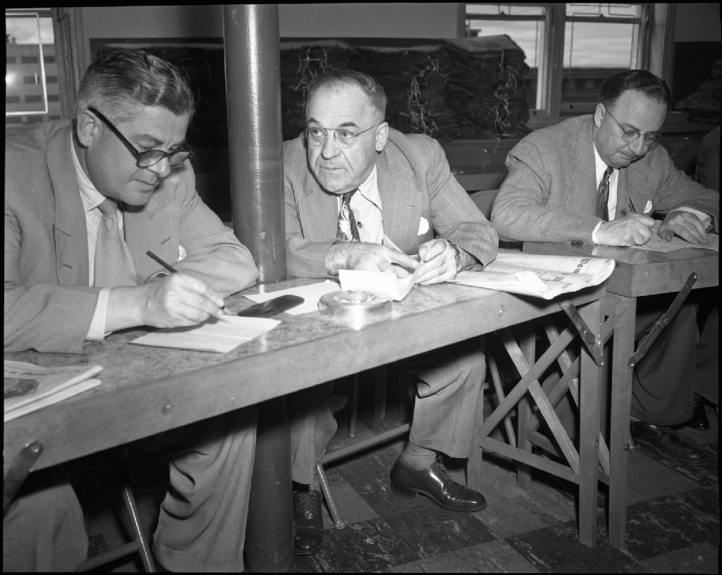 Vente de fourrures. M. Jones, M. Perras et la Hudson Bay Co.. M. Salmonovitch représentant Dominion Furs. 164 Côte d'Abraham, Québec