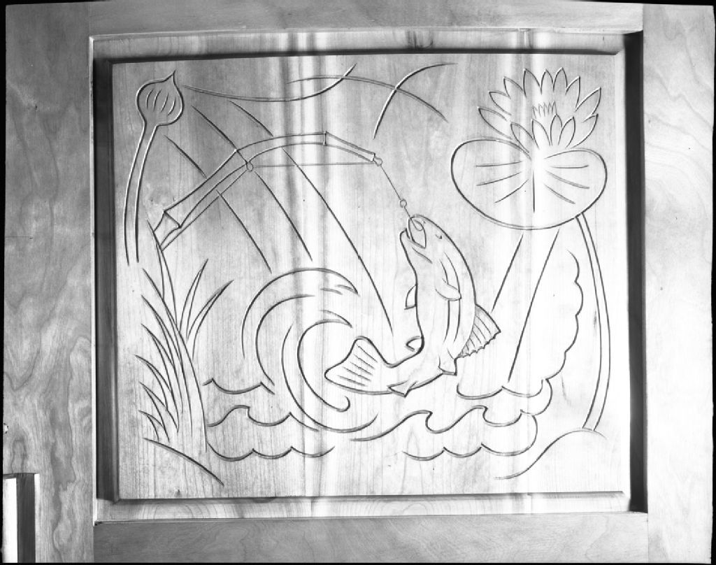 Motifs décoratifs des meubles du bureau de l'Honorable Camille-Eugène Pouliot, 1951, Archives nationales à Québec, Fonds Ministère de la Culture et des Communications, (03Q,E6,S7,SS1,D2,P84691), Neuville Bazin.