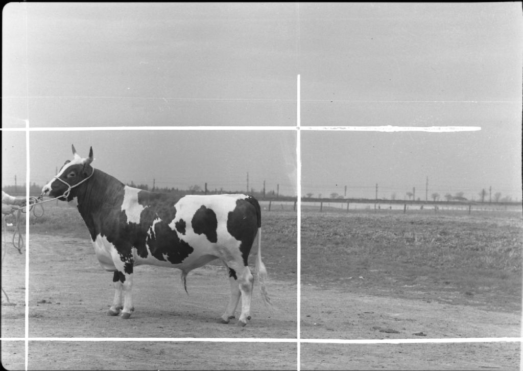 Burnside Keystone. A-12. Insémination artificielle à l'École de Laiterie de St-Hyacinthe. Taureau., 1951, Archives nationales à Québec, Fonds Ministère de la Culture et des Communications, (03Q,E6,S7,SS1,D2,P84850), Paul Carpentier.