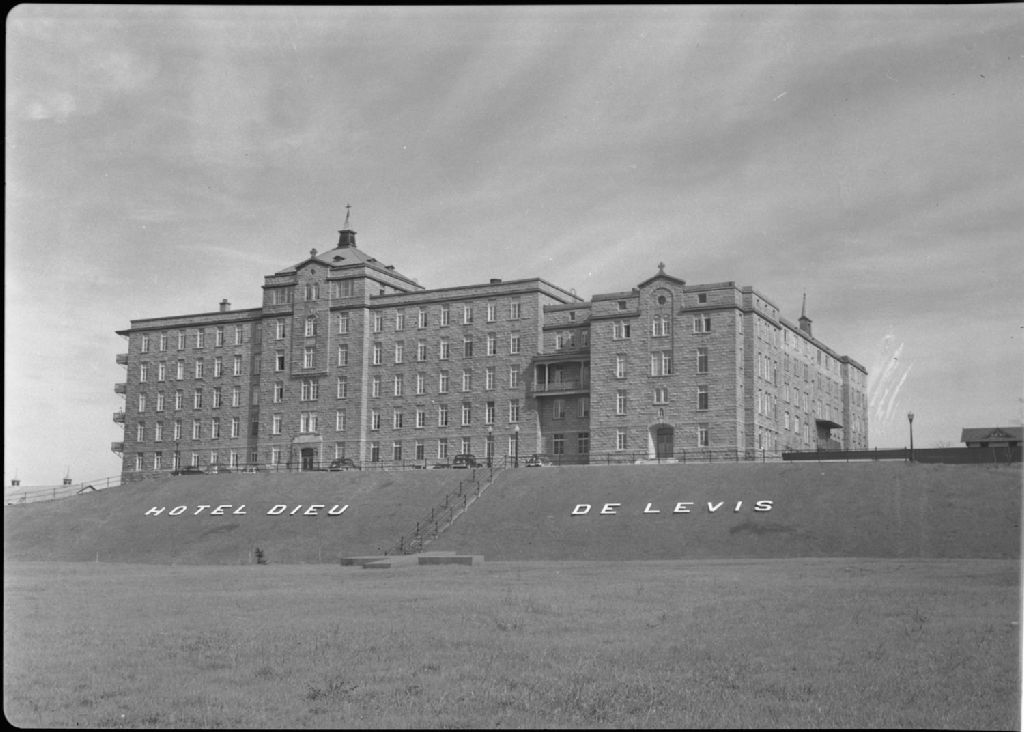 Hôtel-Dieu de Lévis, co. Lévis., 1951, Archives nationales à Québec, Fonds Ministère de la Culture et des Communications, (03Q,E6,S7,SS1,D2,P84903), Paul Carpentier.