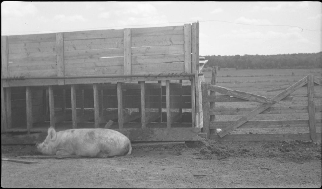 Case d'alimentation des truies d'élevage sur la ferme du curé Alphonse Beaumont à Saint-Narcisse-de-Beaurivage, Lotbinière