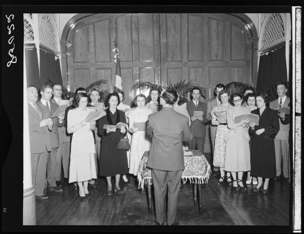 Chorale des instituteurs à l'occasion d'une remise de décorations scolaire