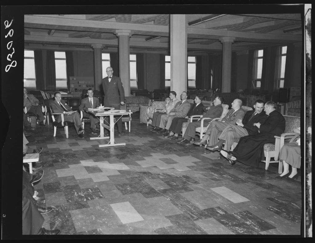 Pendant le discours du Dr.Georges.Maheux lors du lancement du volume "Champignon du Canada et de l'Est des États-Unis" par le Docteur René Pomerleau au Pavillon Monseigneur Vachon, Université Laval