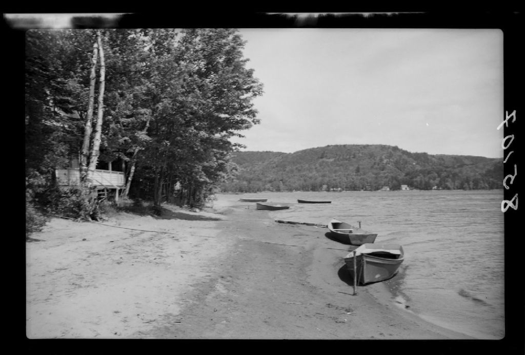 Lac Achigan et ses rives. Lac Achigan, 1951, Archives nationales à Québec, Fonds Ministère de la Culture et des Communications, (03Q,E6,S7,SS1,D2,P85107), Charles-Edmond Deslauriers.