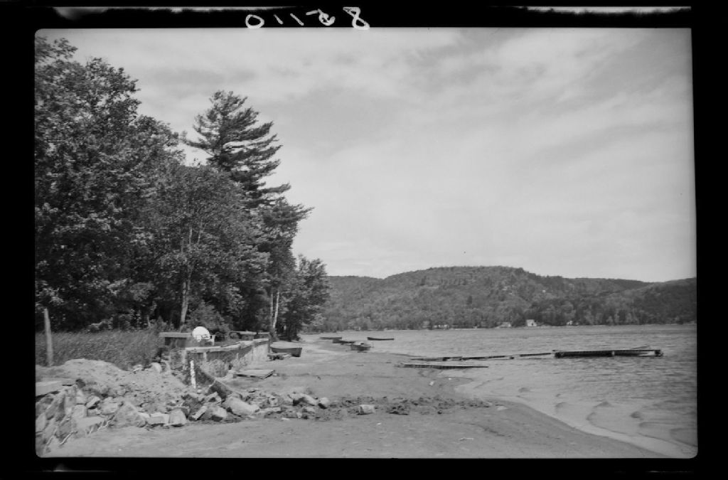 Lac Achigan et ses rives. Lac Achigan, 1951, Archives nationales à Québec, Fonds Ministère de la Culture et des Communications, (03Q,E6,S7,SS1,D2,P85110), Charles-Edmond Deslauriers.
