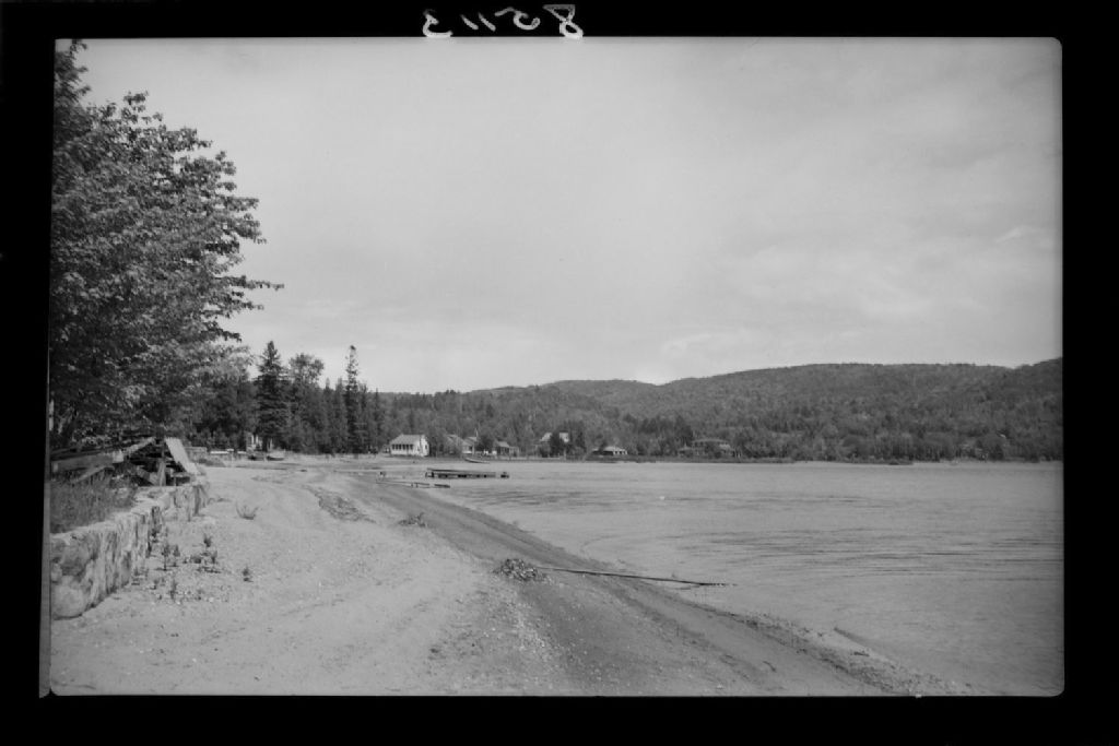 Lac Achigan et ses rives. Lac Achigan, 1951, Archives nationales à Québec, Fonds Ministère de la Culture et des Communications, (03Q,E6,S7,SS1,D2,P85113), Charles-Edmond Deslauriers.