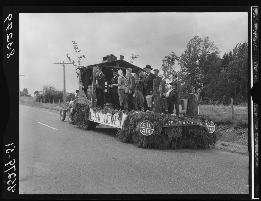 Célébration de la Saint-Jean-Baptiste parade de chars allégoriques, Sainte-Claire, comté Dorchester, 1951, Archives nationales à Québec, Fonds Ministère de la Culture et des Communications, (03Q,E6,S7,SS1,D2,P85279), J.W.Michaud.