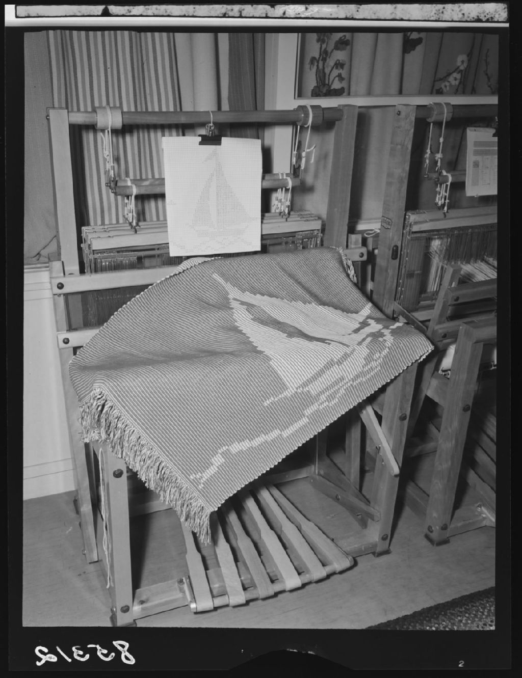 Tapis salle de bain; tissage incrustation effet par chaîne. École des Arts Domestiques