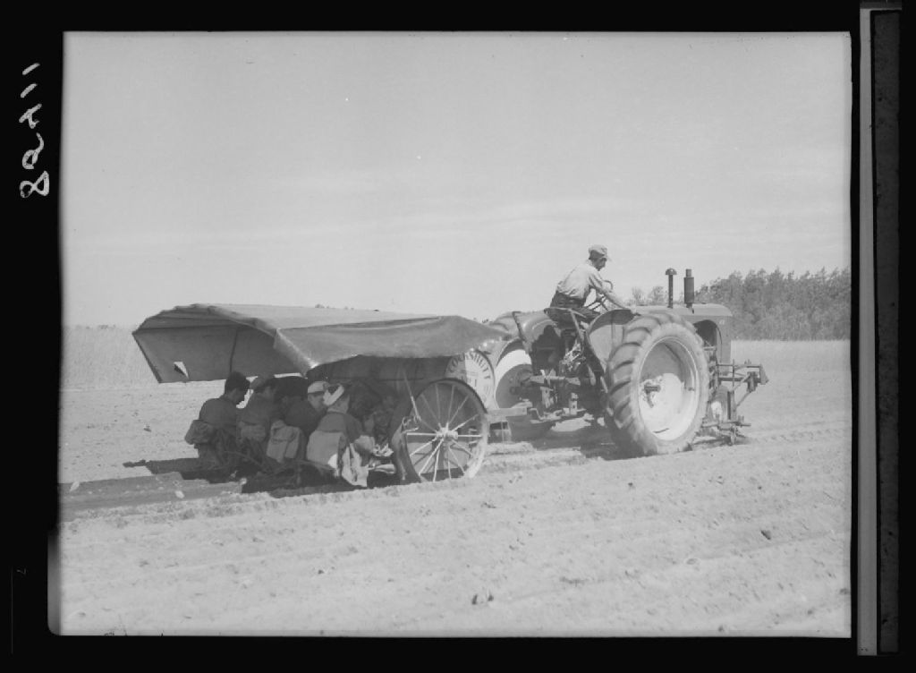 Plantation de tabac jaune à la planteuse à deux rangs et sarclage par sarcleur hydrolique. Saint-Laurent-du-Fleuve.., 1951, Archives nationales à Québec, Fonds Ministère de la Culture et des Communications, (03Q,E6,S7,SS1,D2,P85411), Fernand Godbout.