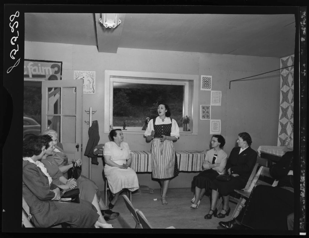 Madame Borowski chante au centre social de Claire-Vallée à Saint-Sylvère, lors de l'inauguration des cours d'été de 1951