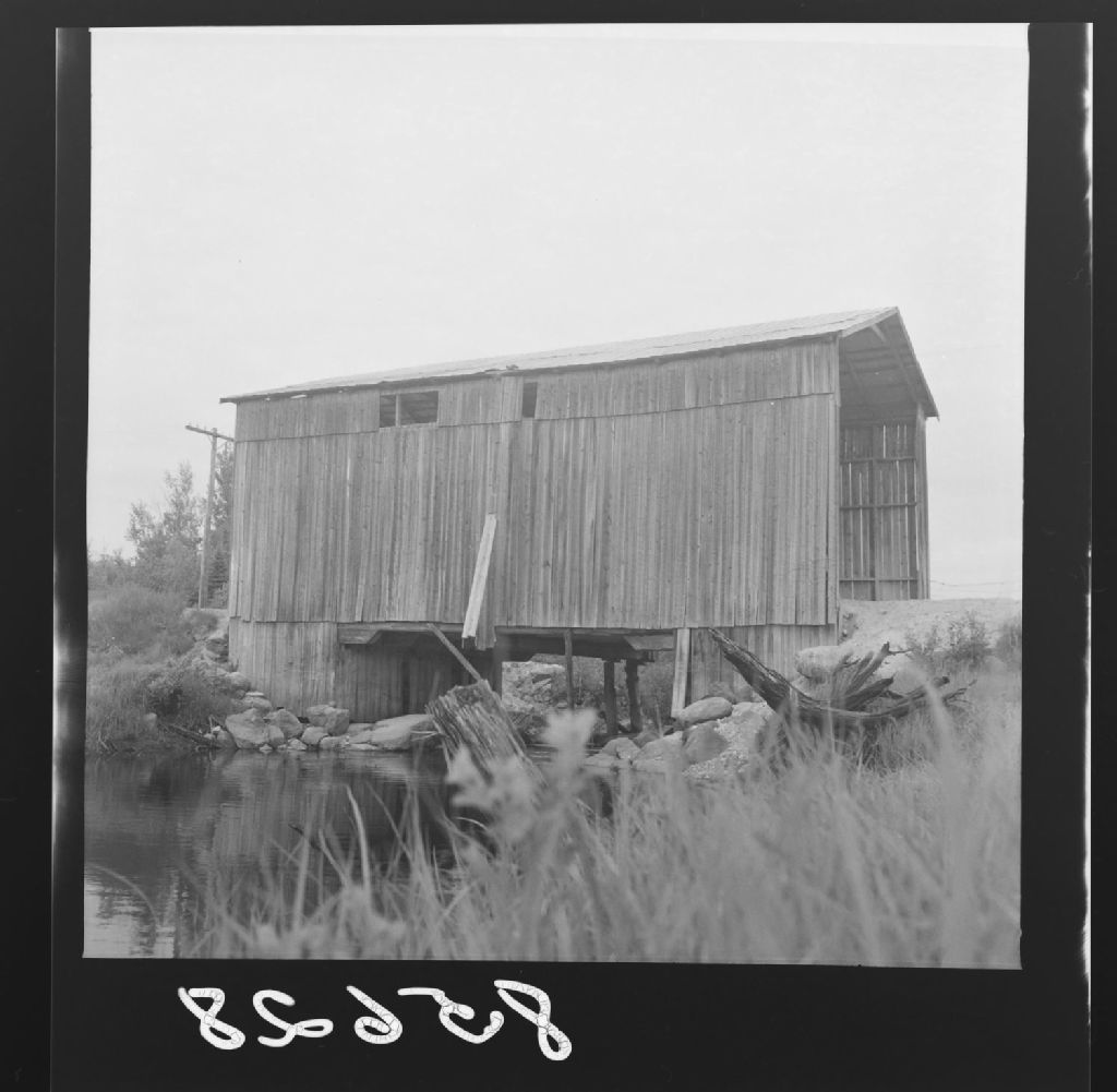 Pont couvert qui enjambe la rivière Belley. Saint-Ludger-de-Milot, 1951, Archives nationales à Québec, Fonds Ministère de la Culture et des Communications, (03Q,E6,S7,SS1,D2,P85628), Auguste Mailloux.