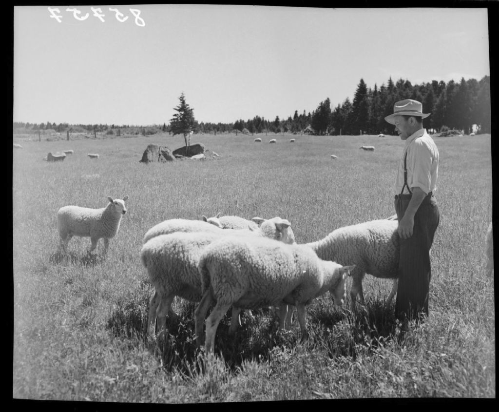 Moutons aux pâturages avec leur berger à la ferme Sainte-Anne. Sainte-Anne-de-la-Pocatière.