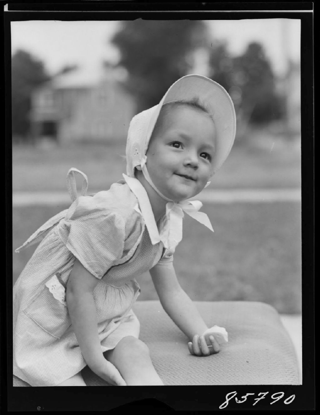 Bébé goûte au fromage Gouda. Coaticook., 1951, Archives nationales à Québec, Fonds Ministère de la Culture et des Communications, (03Q,E6,S7,SS1,D2,P85790), Omer Beaudoin.