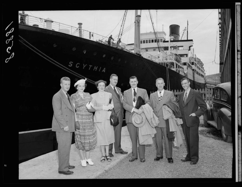 Monsieur et Madame Noé Hénault Inspecteur des Produits agricoles. Monsieur et Madame Harry S. Gutteridge Dominion Poultry Husbaudeman. Départ de Québec pour Paris RE: Congrès Mondial Aviculture, 1951, Archives nationales à Québec, Fonds Ministère de la Culture et des Communications, (03Q,E6,S7,SS1,D2,P85881), Neuville Bazin.