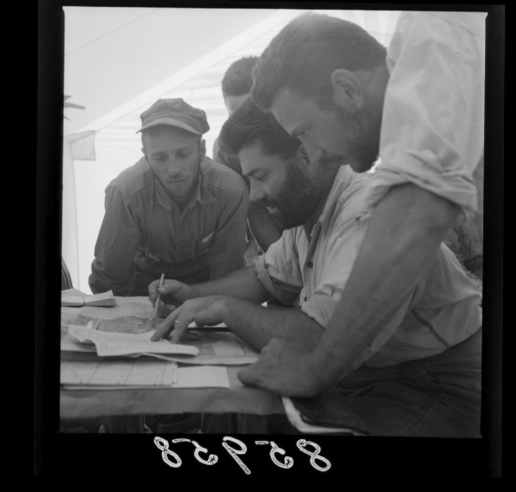 Le chef de brigade explique la mise en plan d'une course de classification de sol, canton Clermont, Abitibi-Ouest