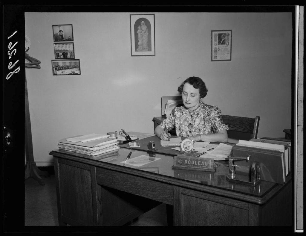 Mademoiselle Cécile Rouleau, chef du Service de l'Enseignement primaire à son bureau