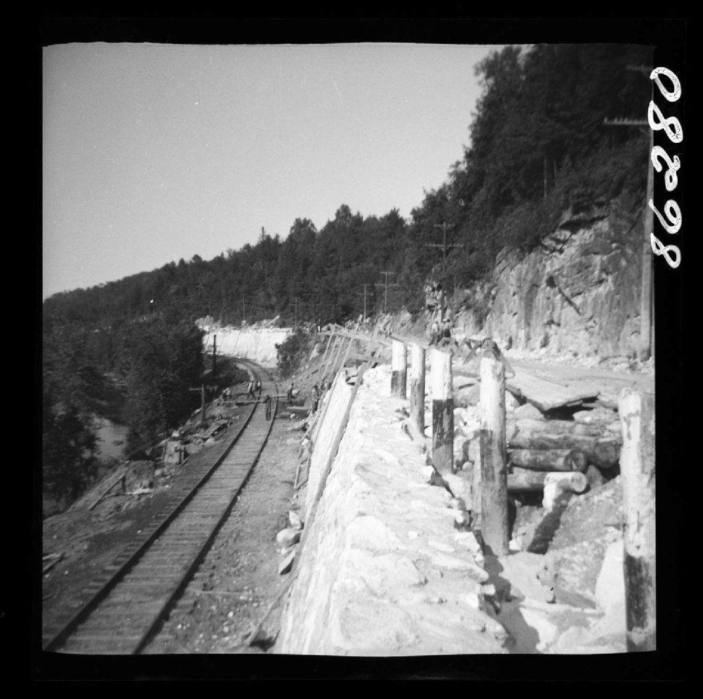 Mur de soutènement sur la route no 11 à Wakefield, comté de Gatineau, 1951, Archives nationales à Québec, Fonds Ministère de la Culture et des Communications, (03Q,E6,S7,SS1,D2,P86280), B. Bertrand.