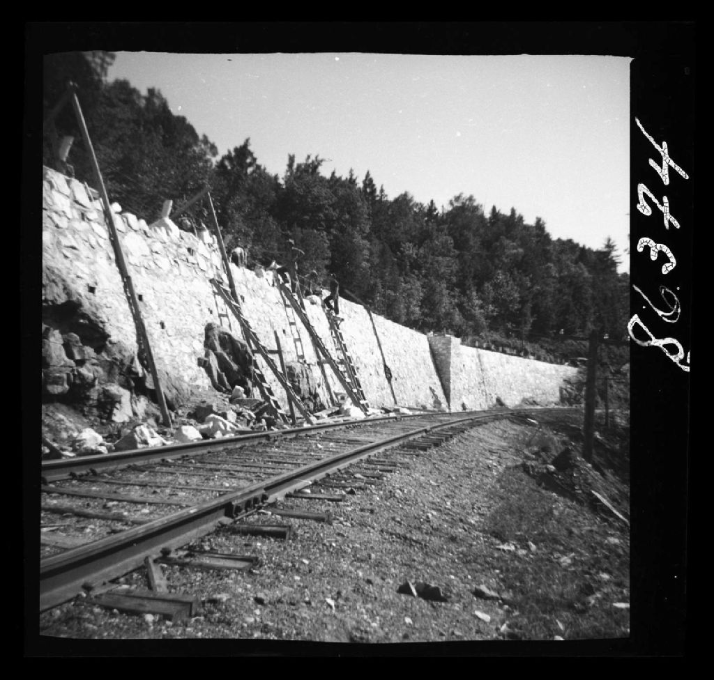 Mur de soutènement sur la route no 11 à Wakefield, comté de Gatineau, 1951, Archives nationales à Québec, Fonds Ministère de la Culture et des Communications, (03Q,E6,S7,SS1,D2,P86374), B. Bertrand.