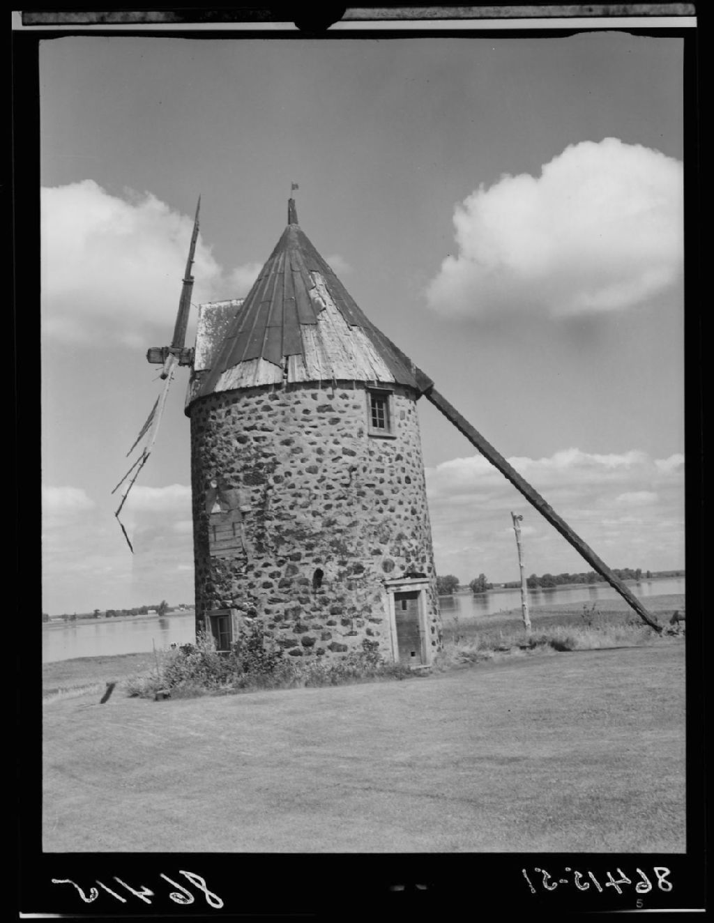 Le vieux moulin à vent. Verchères, 1951, Archives nationales à Québec, Fonds Ministère de la Culture et des Communications, (03Q,E6,S7,SS1,D2,P86415), J.W.Michaud.