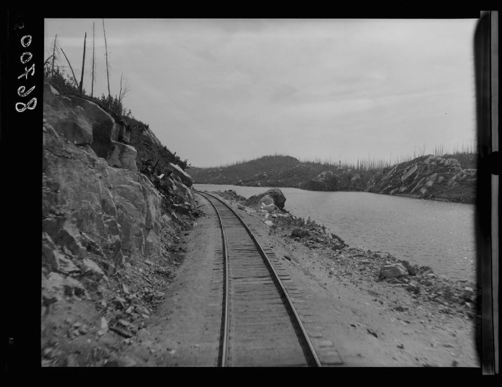 Vue du chemin de fer, Hâvre St-Pierre, 1951, Archives nationales à Québec, Fonds Ministère de la Culture et des Communications, (03Q,E6,S7,SS1,D2,P86700), Lavoie, [?].
