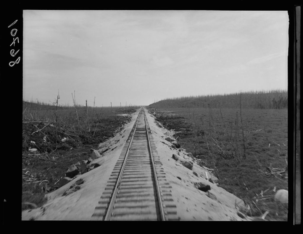 Vue du chemin de fer, Hâvre St-Pierre, 1951, Archives nationales à Québec, Fonds Ministère de la Culture et des Communications, (03Q,E6,S7,SS1,D2,P86701), Lavoie, [?].