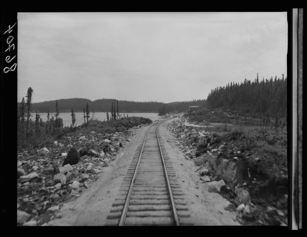 Vue du chemin de fer, Hâvre St-Pierre, 1951, Archives nationales à Québec, Fonds Ministère de la Culture et des Communications, (03Q,E6,S7,SS1,D2,P86704), Lavoie, [?].