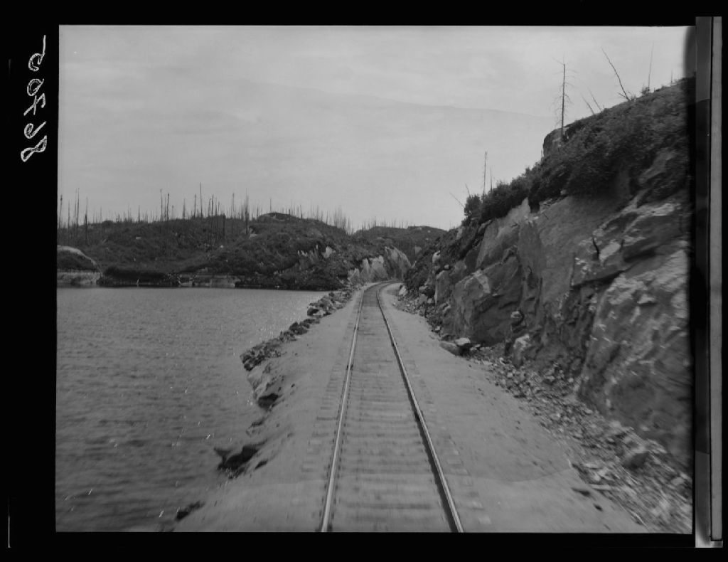 Vue du chemin de fer, Hâvre St-Pierre, 1951, Archives nationales à Québec, Fonds Ministère de la Culture et des Communications, (03Q,E6,S7,SS1,D2,P86705), Lavoie, [?].