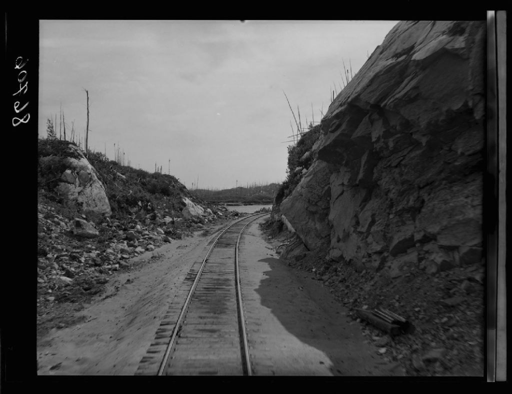 Vue du chemin de fer, Hâvre St-Pierre, 1951, Archives nationales à Québec, Fonds Ministère de la Culture et des Communications, (03Q,E6,S7,SS1,D2,P86706), Lavoie, [?].