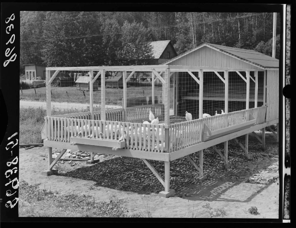 Dindons blancs de Hollande en élevage sur broche. La Trappe à Mistassini.