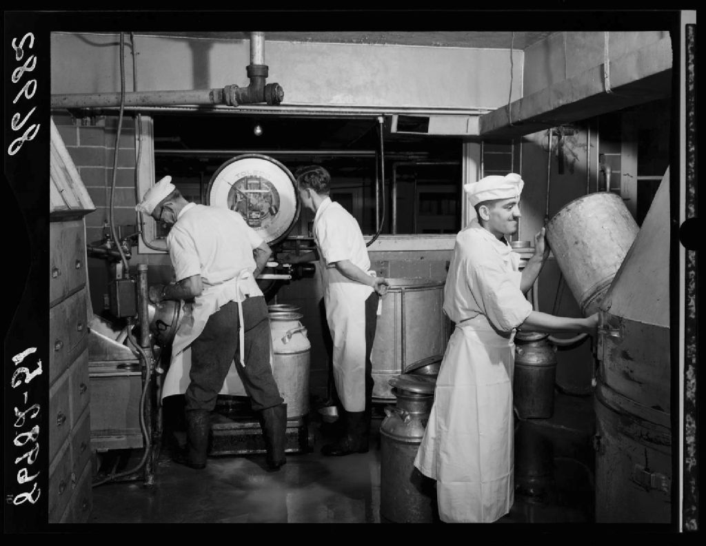 Réception et pesage du lait à la laiterie-fromagerie des Trappistes. Mistassini.