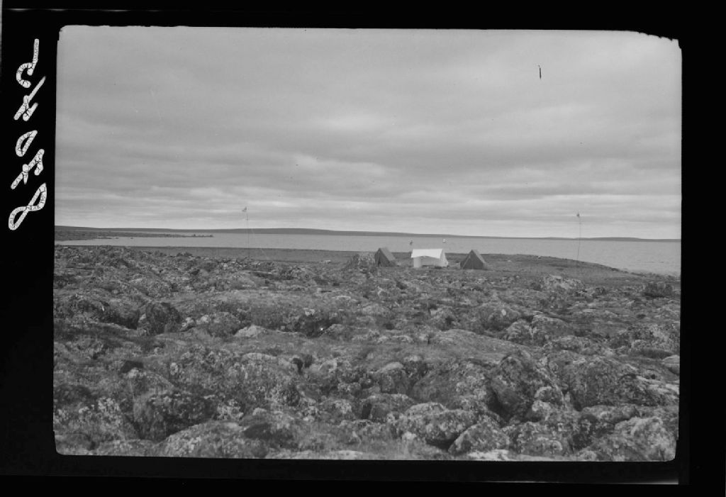 Laflamme lake and camp at National Geographic Society and Roy, Ontario Museum expedition, New Quebec