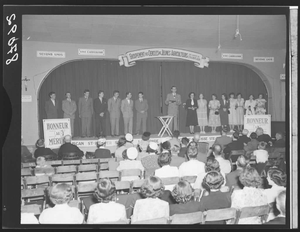 Agronome du comté, Monsieur J. Ulysse Potvin avec lauréates et lauréats à Saint-Maurice, 1951, Archives nationales à Québec, Fonds Ministère de la Culture et des Communications, (03Q,E6,S7,SS1,D2,P87092), Neuville Bazin.