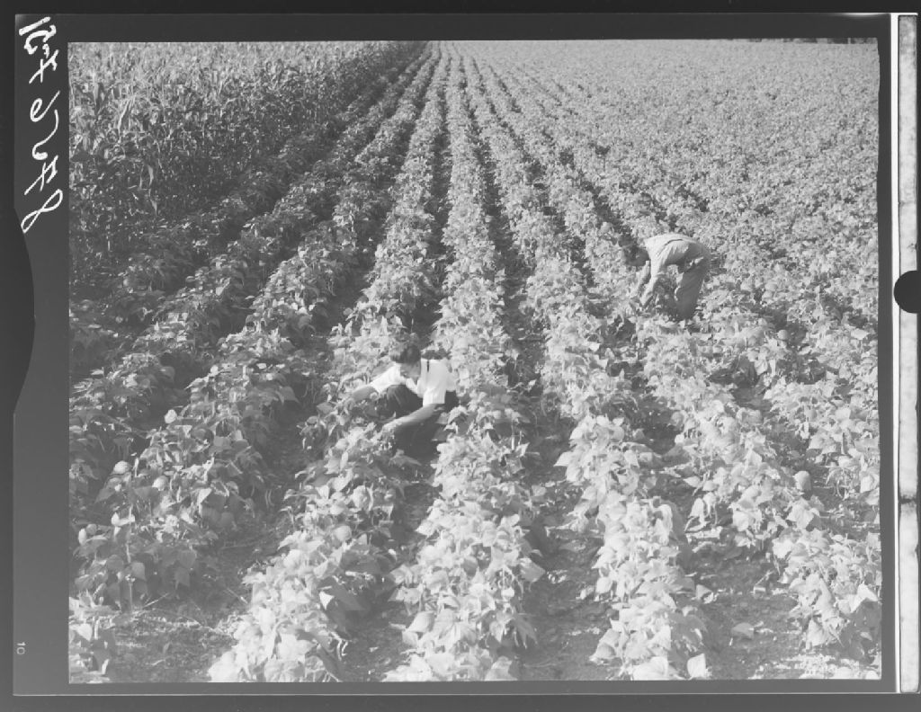 Champ de fèves chez George Larocque. Bedford, comté Missisquoi., 1951, Archives nationales à Québec, Fonds Ministère de la Culture et des Communications, (03Q,E6,S7,SS1,D2,P87567), Omer Beaudoin.