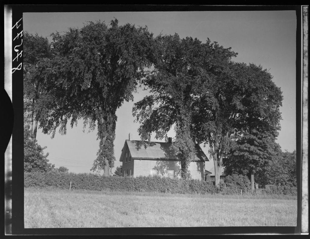 Maison sous les ormes chez George Larocque. Bedford, comté Missisquoi., 1951, Archives nationales à Québec, Fonds Ministère de la Culture et des Communications, (03Q,E6,S7,SS1,D2,P87574), Omer Beaudoin.